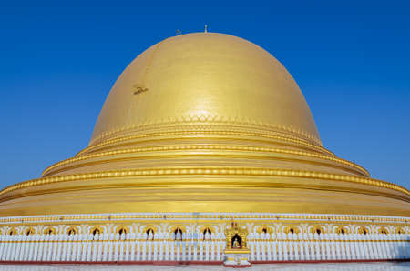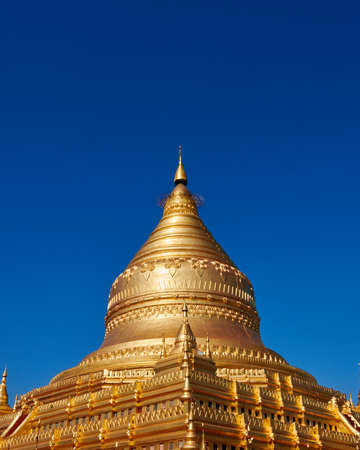 Shwezigon pagoda with blue sky in Bagan, Myanmar.