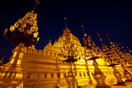 Shwezigon pagoda at twilight time, mandalay, myanmar