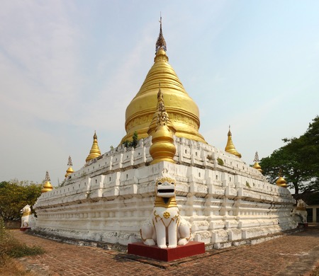 MANDALAY - FEBRUARY 25: Golden pagoda with lion guardian in the corner on Sagaing Hill on February 25, 2013 in Mandalay, Myanmar.