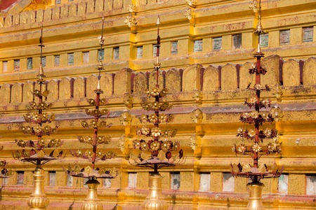 Detail view of golden Shwezigon pagoda Bagan, Myanmar