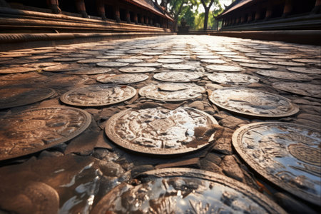 Sacred Serenity: The Enchanting Grunge Beauty of Thai Classic Patterns on Ancient Outdoor Tiles