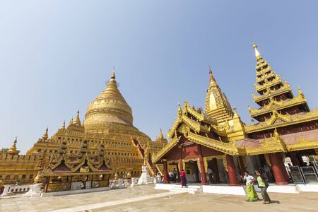 Bagan, Myanmar, December 29, 2017: The Shwezigon Pagoda or Shwezigon Paya is a Buddhist temple located in Nyaung-U, a town near Bagan, in Myanmar