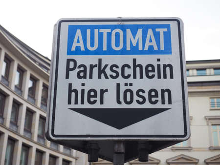 Automatic parking pay here sign (Automat parkschein hier loesen in German)