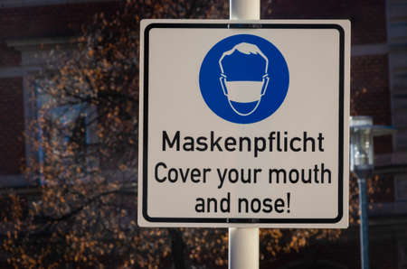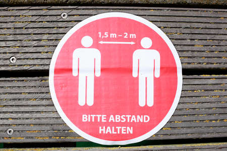 Sign Please keep your distance, minimum distance due to corona virus, Germany, Europe
