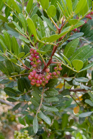 Red berries of a wild mastic bush (Pistacia lentiscus)