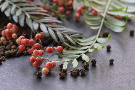 Chinese prickly ash fruits background, Sichuan pepper, Zanthoxylum bungeanum