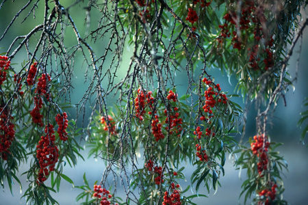 evocative close-up image of red berries from the Mediterranean scrub in Italy