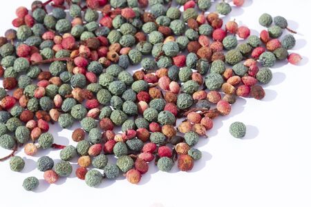 Szechuan pepper (Zanthoxylum piperitum), fruits isolated against white background