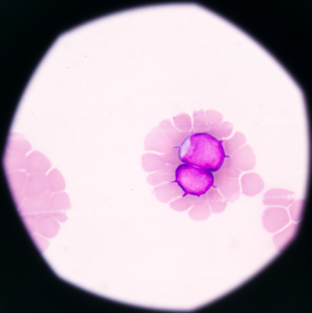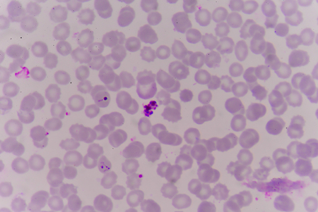 Malaria blood parasite infected red blood cells laboratory background.