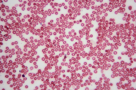 Blood cells in human body under microscope view for education in laboratory.