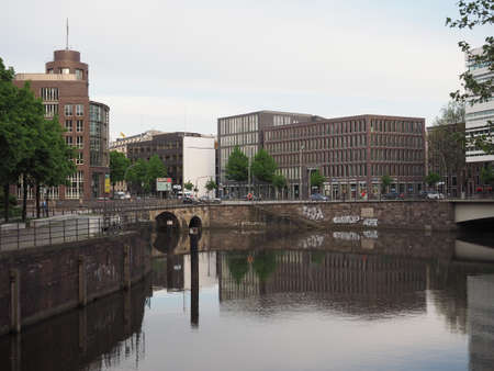 HAMBURG, GERMANY - June 22, 2019 Bleichenfleet and Alte Post building from backside