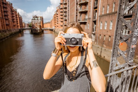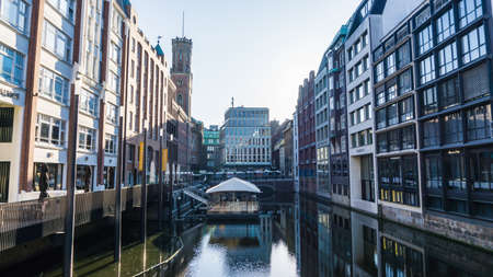 Scenery around a canal named Nikolaifleet in Hamburg, Germany