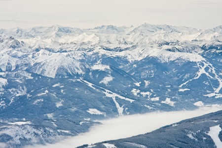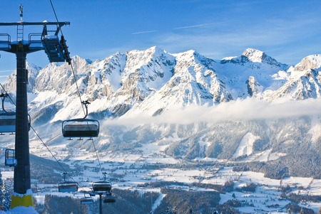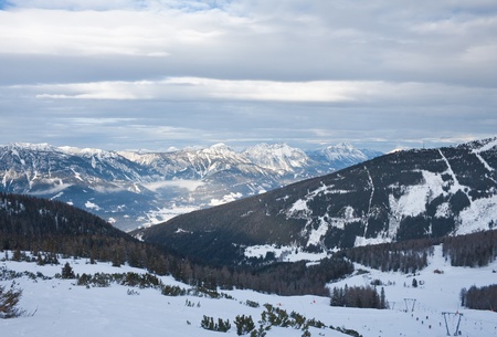 Snowy peaks, Planneralm skiing resort in winter, Austrian Alps