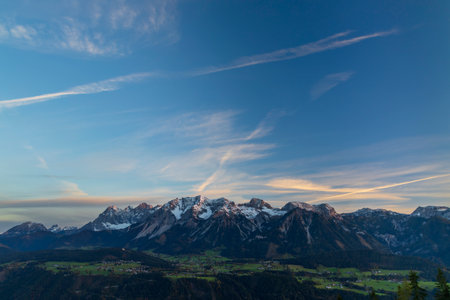 Panoramic view of the Swiss alps at sunset, Switzerland