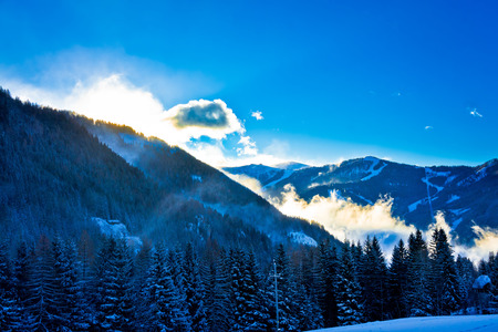 Beautiful winter landscape with coniferous trees covered with snow, Austria