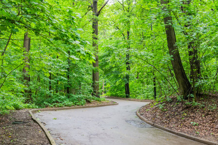 Walking trail in Vorobyovy Gory nature preserve in Moscow, Russia.