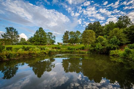 Dramatic sky over the lake at Symphony Park, in Charlotte, North Carolina.