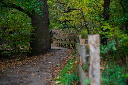 The quiet time of the plank road in the forest, the stairs to the depths of the forest