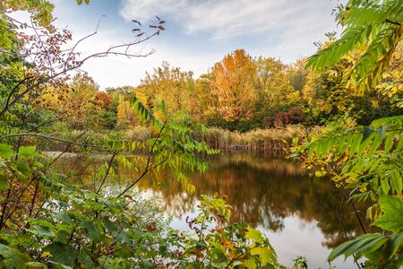 A Calm Pond on a Quiet Fall Morning in the Crabtree Nature Preserve in Illinois