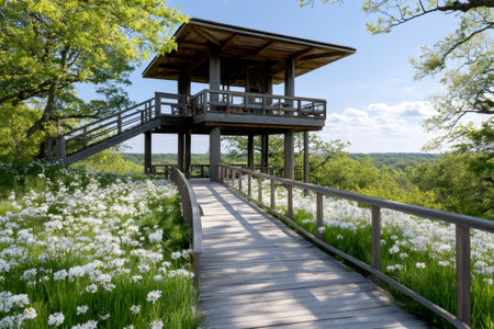 Tower, bridge, and Bird watching walkway boardwalk in Myakka State Park in Sarasota, Florida