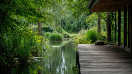 Harmonious Oasis: Exploring the Serene Splendor of a 3:2 Fish Pond Enveloped by Lush Botanical Haven