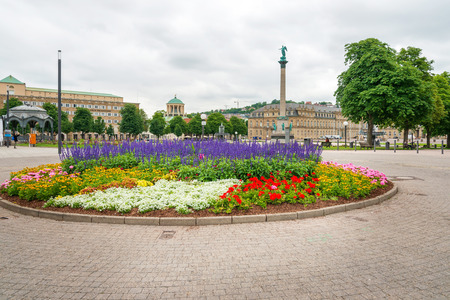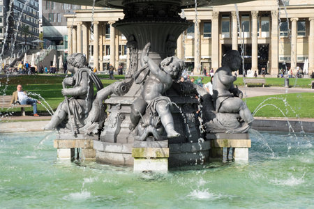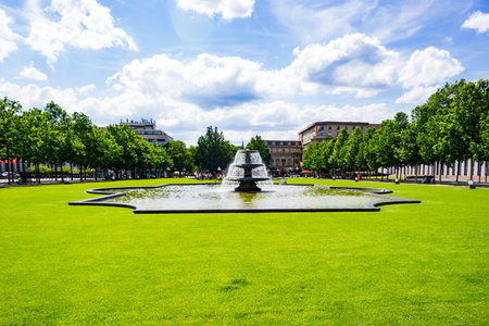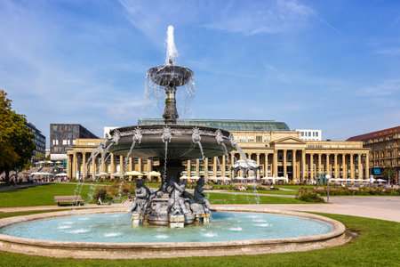 Stuttgart city town Castle square Schlossplatz with fountain travel in Germany