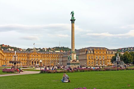 Stuttgart, Germany - September 17, 2012: Citizens and guests of the city are walking and resting on the Schlossplatz in Stuttgart, near the New Castle, which was built between 1746 and 1807. GPS information is in the file.