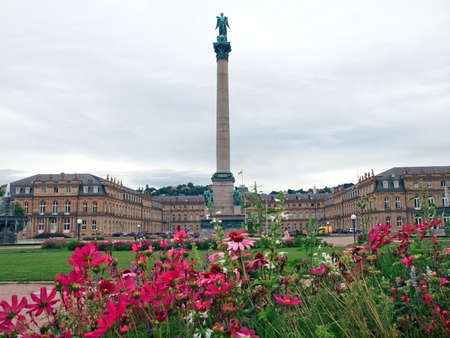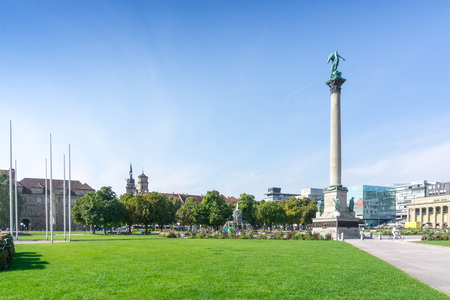 SUTTGART, GERMANY - SEPTEMBER 14, 2010: King Wilhelm column and New Castle at Schlossplatz, Stuttgart