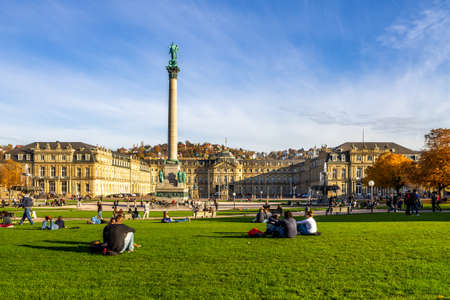 Stuttgart, Germany, September 18, 2020: People are enjoying a sunny day at Schlossplatz in Stuttgart, Germany