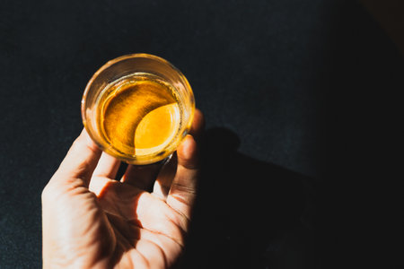 man holding glass of alcohol on dark background
