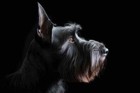 Portrait Of Dog Scottish Terrier In Profile On Black Matte Background