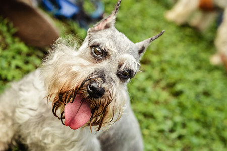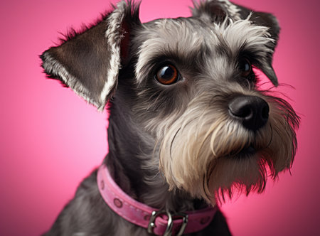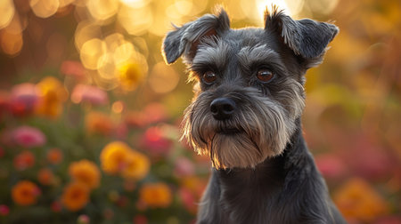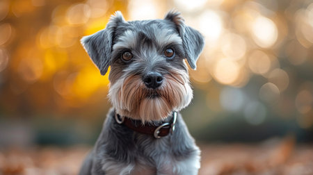 Charming Miniature Schnauzer with Engaging Expression and Whiskers, Ideal for Stock Photography Use