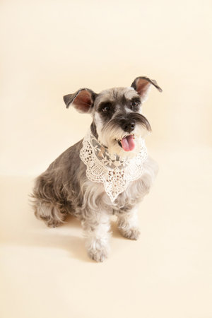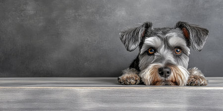 Charming Miniature Schnauzer with Adorable Beard Posing Gracefully Against a Soft Gray Background