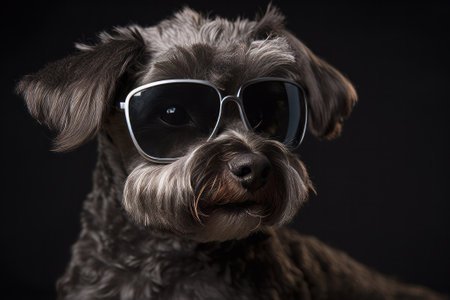 Studio shot of an adorable miniature schnauzer wearing sunglasses.