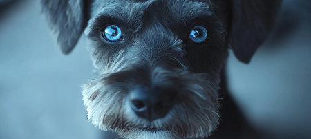 Striking Portrait of a Miniature Schnauzer with Intense Blue Eyes Against a Plain Background