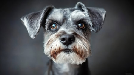 Charming Miniature Schnauzer Portrait with Expressive Eyes and Sweet Personality on Gray Background