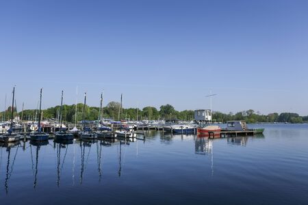 Beautiful view of sailboats and houses at Steinhudermeer, Lower Saxony, Germany
