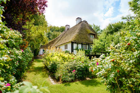 Beautiful Schlei region in Germany, Schleswig Holstein. German landscape in summer. Schlei river and typical houses with thatching, water reed roofs. Sieseby village