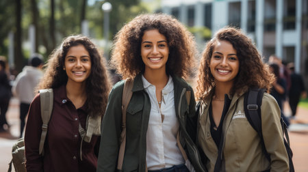 Generative AI : Happy children girls girlfriend schoolgirl student elementary school