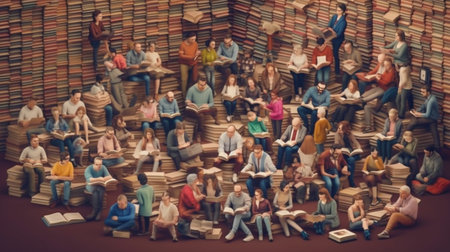 A hazy gathering of readers lost in passionate discussions about plot twists and character developments