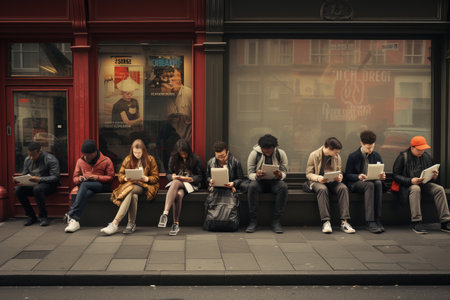 Urban Reflections: Capturing Moments of People Sitting on Sidewalks --ar 3:2