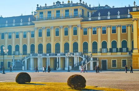 Vienna, Austria, Mar 4, 2017 : Schonbrunn Baroque Palace in Vienna. is a former imperial summer residence.