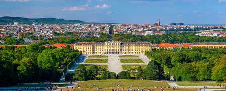 Vienna, Austria - 27 July 2023: Schoenbrunn palace and gardens. Schloss Schoenbrunn is imperial summer residence in Vienna. Schonbrunn Palace is major tourist attraction in Austria.