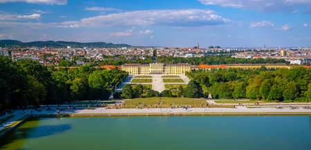 Vienna Austria July.1 2020, Areal view at Schoenbrunn Palace imperial summer residence and the Cityscape