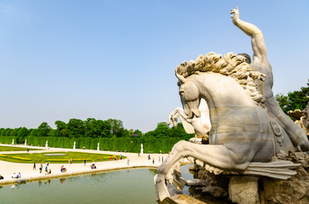 Austria, Schonbrunn Palace Imperial fountain in royal Gardens in Vienna.