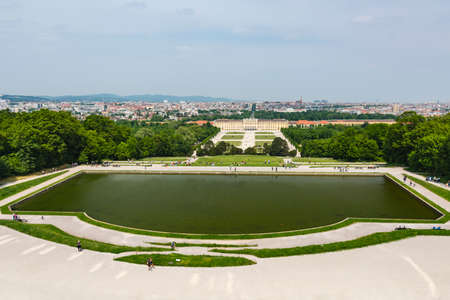 High angle view over the large Schoenbrunn Palace park in Vienna, Austria.