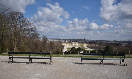 AUSTRIA, VIENNA - MARCH 26: Vienna is capital and largest city of Austria. Park of summer residence of the Habsburg rulers. View to Schönbrunn Palace on 26 March 2019, Hietzing, Austria.