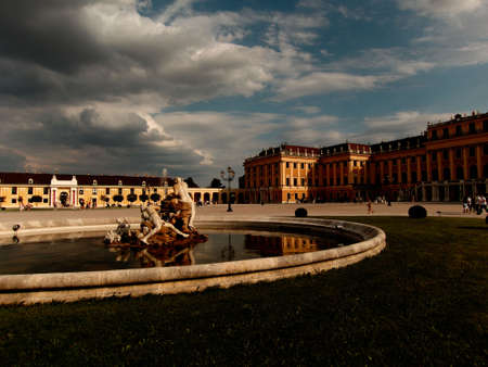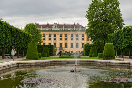 31 May 2019 Vienna, Austria - Ehrenhof Fountain in front of Schonbrunn palace. Cloudy springtime weather
