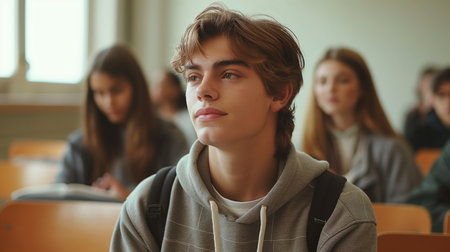 young high school student together with other students in background