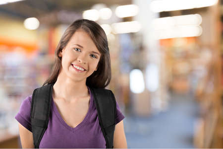 Happy student young girl with backpack at school.